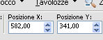 Imposta Posizione X: 582,00 e Posizione Y: 341,00.