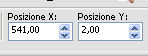 Imposta Posizione X: 541,00 e Posizione Y: 2,00.