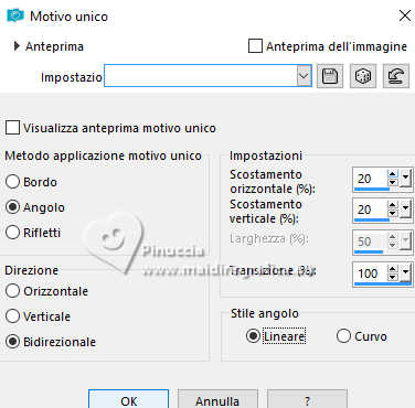 2. Effetti>Effetti di immagine>Motivo unico, con i settaggi standard.