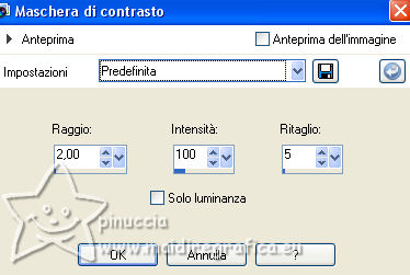 Regola>Messa a fuoco>Maschera di contrasto, con i settaggi standard.