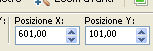 e imposta Posizione X: 601,00 e Posizione Y: 101,00.