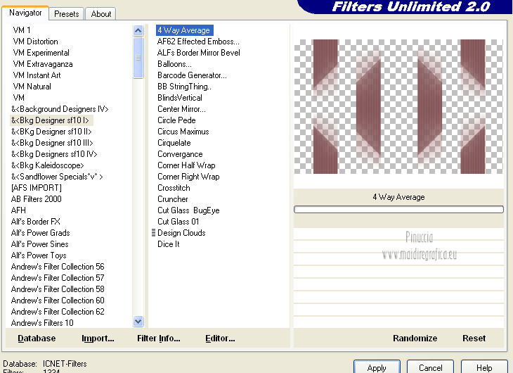 Effetti>Plugins>Filters Unlimited 2.0 - &<Bkg Designer sf10 I> - 4way average.