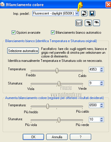 Regola>Bilanciamento colore - seleziona il preset Fluorescent-daylight e ok.