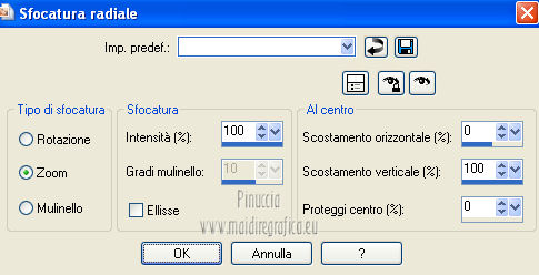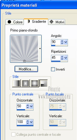 Passa il colore di primo piano a Gradiente, stile Radiale, con i seguenti settaggi.