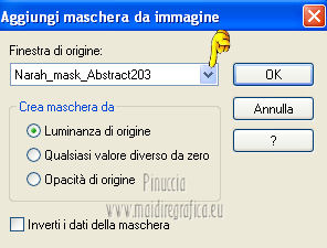 Seleziona la maschera Narah_mask_Abstract203, con i seguenti settaggi: