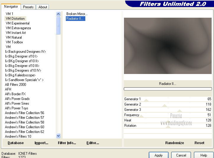 Effetti>Plugins>Filters Unlimited 2.0 - VM Distortion - Radiator II, con i settaggi standard.