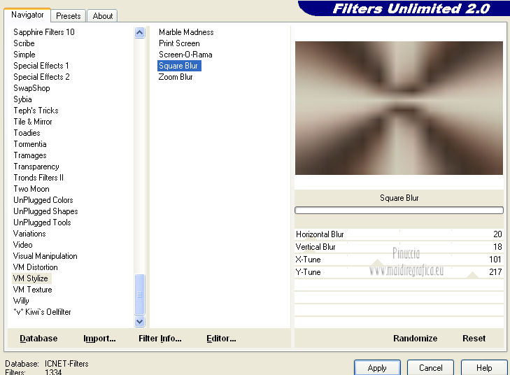 Effetti>Plugins>Filters Unlimited 2.0 - VM Stylize - Square Blur.