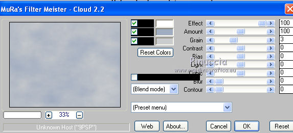 Premere successivamente il tasto Reset serve per cambiare casualmente (ragione per la quale il tuo risultato non potrà essere uguale al mio esempio, l'aspetto delle nuvole.