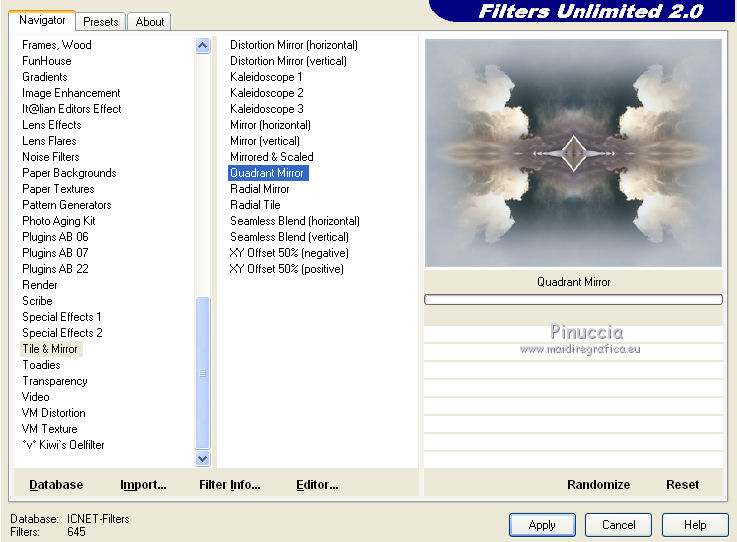 Effetti>Plugins>Filters Unlimited 2.0 - Tile and Mirror - Quadrant Mirror.