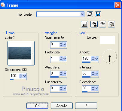 Effetti>Effetti di Trama>Trama - seleziona Water 2 con i seguenti settaggi.