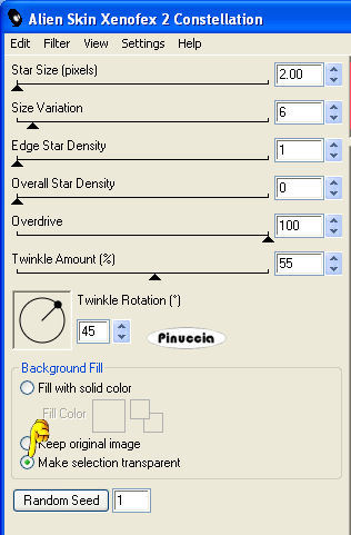 Ripeti l'Effetto Constellation, con gli stessi settaggi, ma selezionando "Make selection transparent".