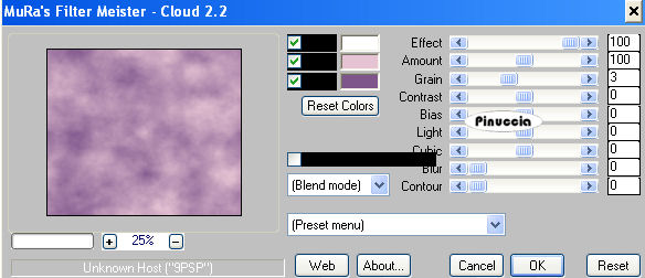 Premere successivamente il tasto Reset serve per cambiare casualmente (ragione per la quale il tuo risultato non potrà essere uguale al mio esempio, l'aspetto delle nuvole.