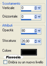 Applica al tube un leggero effetto Sfalsa ombra; nel mio esempio ho usato i settaggi precedenti.
