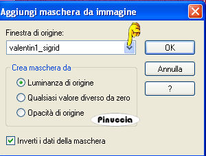 Apri il menu sotto la finestra di origine e vedrai la lista dei files aperti, compresa la maschera.