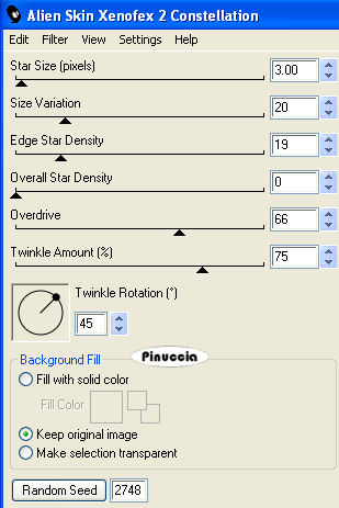 Ripeti l'Effetto Constellation, con gli stessi settaggi, ma cliccando una volta su Random Seed.