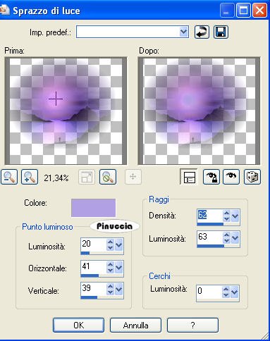 Effetti>Effetti di illuminazione>Sprazzo di luce, con il colore chiaro di primo piano.