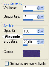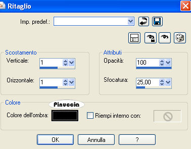 Effetti>Effetti 3D>Sfalsa ombra, con i seguenti settaggi e con il colore scuro di sfondo: