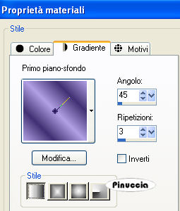 Passa il colore di primo piano a Gradiente con i seguenti settaggi: