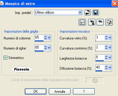 ricorda che questo filtro lavora con i lavori impostati nella paletta dei materiali, ma tiene in memoria il primo settaggio dall'apertura del programma.