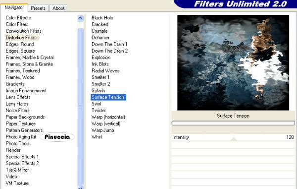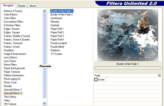qui puoi trovare qualche risposta ai tuoi dubbi. Se l'argomento che ti interessa non è presente, ti prego di segnalarmelo. Questo tutorial è stato creato con PSP 9, ma può essere eseguito anche con le altre versioni di PSP. Per tradurlo, ho usato PSP X. Questo tutorial è una creazione di ©Sille e non può essere copiato su altri siti nè essere offerto per il download. Lo stesso vale per la mia traduzione. Occorrente: Materiale qui Per i tubes grazie Trizi Tubed, Mone e Tinche. Filtri: Filters Unlimited 2.0 qui FM Tile Tools qui Alien Skin Xenofex 2 qui Apri i tubes in PSP. Duplicali usando sulla tastiera la combinazione di tasti shift(maiuscola)+D e chiudi gli originali. 1. Apri una nuova immagine trasparente 700 x 600 pixels, e riempila con il colore nero.Livelli>Nuovo livello raster. Selezione>Seleziona tutto. Apri il file di sfondo Landscape003 e vai a Modifica>Copia. Torna al tuo lavoro e vai a Modifica>Incolla nella selezione. Selezione>Deseleziona. Regola>Messa a fuoco>Metti a fuoco. Effetti>Plugins>FM Tile Tools - Blend Emboss: ![]() 2. Apri il tube "scenic90". Immagine>Rifletti. Modifica>Copia. Torna al tuo lavoro. Livelli>Nuovo livello raster. Selezione>seleziona tutto. Modifica>Incolla nella selezione. Selezione>Deseleziona. Sposta un po' il tube, in modo che si trovi sulla linea dell'orizzonte.Cambia la modalità di miscelatura di questo livello in Luminanza (esistente). ![]() 3. Apri il tube con il viso "TriziaTubed Lora" e vai a Modifica>Copia. Torna al tuo lavoro e vai a Modifica>Incolla come nuovo livello. Immagine>Ridimensiona, al 70%, tutti i livelli non selezionato. Spostalo nell'angolo in alto a sinistra.Cambia la modalità di miscelatura di questo livello in Luminanza (esistente), e abbassa l'opacità al 70%. Attiva lo strumento Gomma ![]() e cancella dal viso della donna le tracce dei paesaggi che lo disturbano. Non dimenticare, prima di cancellare, di posizionarti sul relativo livello. ![]() 4. Apri il tube della donna "MMDesignz_nov08_030small" e vai a Modifica>Copia. Torna al tuo lavoro e vai a modifica>Incolla come nuovo livello. Immagine>Ridimensiona, all'85%, tutti i livelli non selezionato. Regola>Messa a fuoco>Metti a fuoco. Posiziona la donna sul pontile.Effetti>Effetti 3D>sfalsa ombra: ![]() Livelli>Unisci>Unisci visibile. 5. Livelli>Duplica. Immagine>Ridimensiona, al 90%, tutti i livelli non selezionato. 6. Attiva il livello inferiore. Effetti>Plugins>Filters Unlimited 2.0 - Distortion filters - Surface Tension: ![]() Immagine>Ridimensiona, al 120%, tutti i livelli non selezionato. Effetti>Plugins>Filters Unlimited - Special Effects 2 - Border White Fade 1: ![]() 7. Attiva il livello superiore. Effetti>Plugins>Alien Skin Xenofex - Burnt Edges: ![]() Immagine>ruota per gradi - 5 gradi a sinistra: ![]() Regola>Messa a fuoco>Metti a fuoco. 8. Apri il tube 03-Ringen-X. E' già selezionato il ring che devi usare. Modifica>Copia. Torna al tuo lavoro e vai a Modifica>Incolla come nuovo livello. Livelli>Duplica, 3 volte, e posiziona gli occhielli nei quattro angoli dell'immagine interna. 9. Attiva lo strumento Testo , scegli un font, o usa il font fornito con il materiale,e scrivi un testo sull'immagine, senza dimenticare di aggiungere il tuo nome e/o il tuo watermark. 10. Immagine>Aggiungi bordatura, 1 pixel, simmetriche, con il colore nero. Hai finito. Puoi salvare in formato jpg. Se hai problemi o dubbi, o trovi un link non funzionante, o anche soltanto per un saluto, scrivimi. 22 Dicembre 2008 |