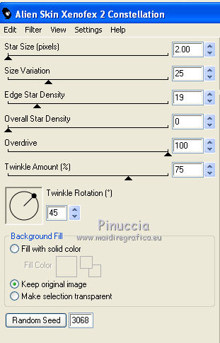 Effetti>Plugins>Alien Skin Xenofex 2.0 - Constellation, clicca una volta su Random Seed.