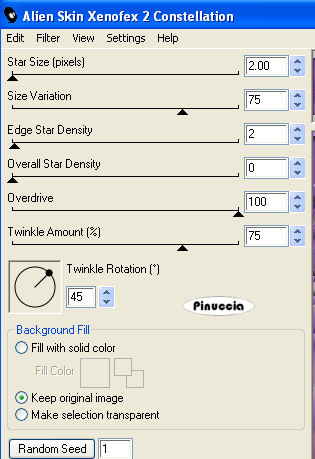 Ripeti l'Effetto Constellation, con gli stessi settaggi, ma cliccando una volta su Random Seed.