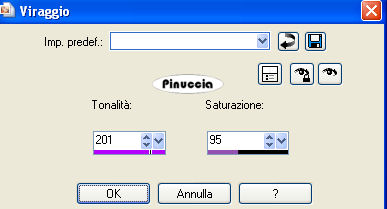 Regola>Tonalità e Saturazione>Viraggio, e trascrivi i valori nelle relative caselle: