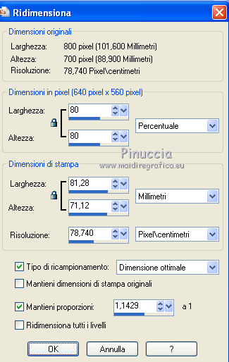 Immagine>Ridimensiona, all'80%, tutti i livelli non selezionato, ricampionamento dimensione ottimale.