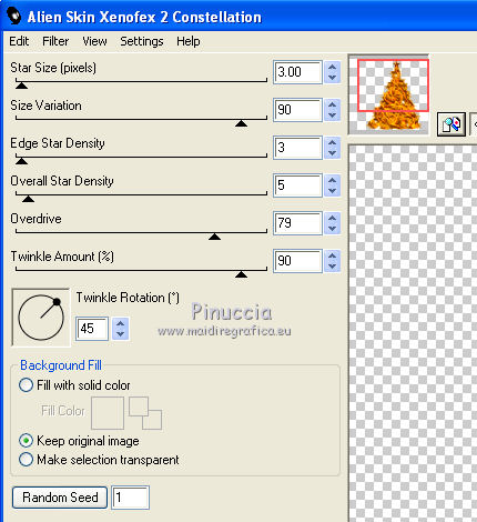 Ripeti l'Effetto Constellation con gli stessi settaggi, ma cliccando una volta su Random Seed.