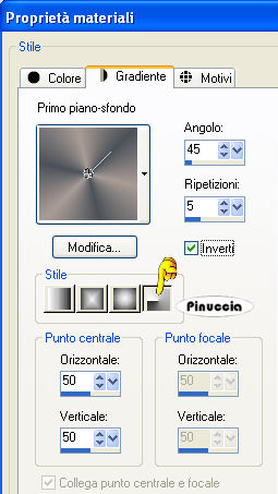 Passa il colore di primo piano a Gradiente di primo piano/sfondo, con i seguenti settaggi: