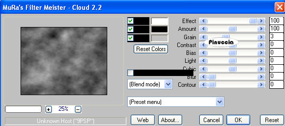 Effetti>Plugins>Mura's Meister - Cloud e premi il tasto Reset.