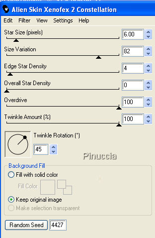 Ripeti l'Effetto Constellation, con gli stessi settaggi, ma cliccando una volta su Random Seed.