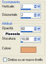 Effetti>Effetti 3D>Sfalsa ombra, con i settaggi precedenti.