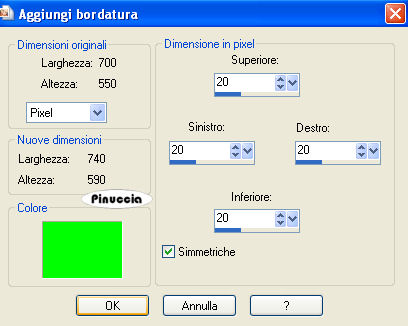 Immagine>Aggiungi bordatura, 20 pixels, simmetriche, con un colore qualsiasi, purchè non presente nell'immagine):