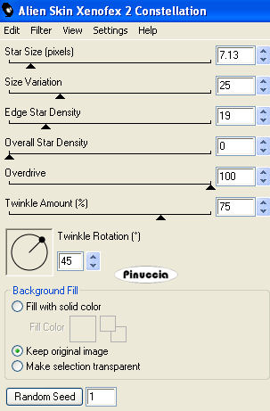 Ripeti l'Effetto Constellation, con gli stessi settaggi, ma cliccando una volta su Random Seed.