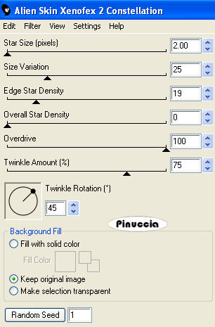 Ripeti l'Effetto Constellation, con gli stessi settaggi, ma cliccando una volta su Random Seed.