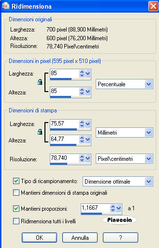 Immagine>Ridimensiona, all'85%, tutti i livelli non selezionato.