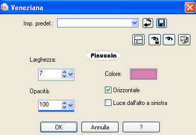 Effetti>Effetti di trama>Veneziana, con un colore medio scelto dall'immagine.