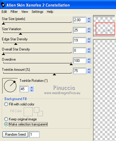 qui puoi trovare qualche risposta ai tuoi dubbi. Se l'argomento che ti interessa non è presente, ti prego di segnalarmelo. Questo tutorial è stato creato con PSP 9, ma può essere eseguito anche con le altre versioni di PSP. Per tradurlo, ho usato PSP X. Questo tutorial è una creazione di ©Sille e non può essere copiato su altri siti nè essere offerto per il download. Lo stesso vale per la mia traduzione. Grazie ai creatori dei tubes che mettono a disposizione il loro lavoro in vari gruppi di condivisione. Rispetta il lavoro degli autori, non cambiare il nome del file e non cancellare il watermark. ![]() Occorrente: Materiale qui Per i tubes grazie Elli's e The PSP-Devils Tube-Group Filtri: se hai problemi con i filtri, qui Mura's Meister - Copies qui Filters Unlimited 2.0 qui Alien Skin Xenofex 2.0 - Constellation, Burnt Edges qui Ti servirà anche Animation Shop qui