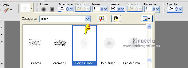 cerca e seleziona il pennello Feines Haar, con i seguenti settaggi.