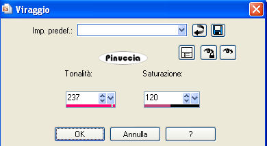 Regola>Tonalità e saturazione>Viraggio, con i settaggi precedenti.
