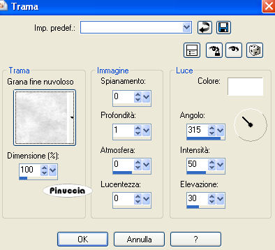 Effetti>Effetti di Trama - Trama, seleziona la trama Tratteggio fine, con i seguenti settaggi.