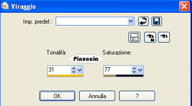 Regola>Tonalità e saturazione>Viraggio e trascrivi i valori annotati nelle rispettive caselle.