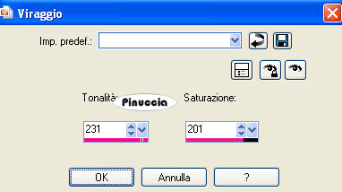 Regola>Tonalità e saturazione>Viraggio, con i valori corrispondenti al colore chiaro.