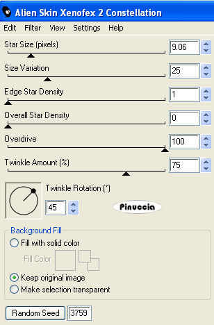 Ripeti l'Effetto Constellation, con gli stessi settaggi, ma cliccando una volta su Random Seed.