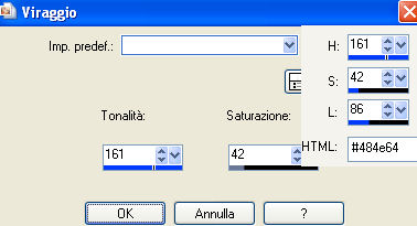 Regola>Tonalità e saturazione>Viraggio, con i settaggi precedenti.