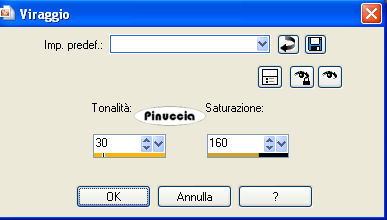 Regola>Tonalità e Saturazione>Viraggio e trascrivi i valori annotati nelle rispettive caselle.