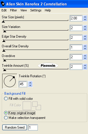 Ripeti l'Effetto Constellation, con gli stessi settaggi, ma cliccando una volta su Random Seed.