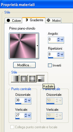 Passa il colore di primo piano a Gradiente, con i seguenti settaggi: