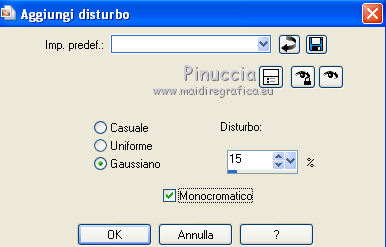 Regola>Aggiungi/rimuovi disturbo>Aggiungi disturbo, con i settaggi precedenti.